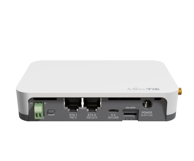 RB924iR-2nD-BT5&BG770A&R11e-LR8G — компактный шлюз LoRaWAN, который обеспечивает доступную и надёжную беспроводную связь в 2,4 ГГц даже в самых удалённых регионах или районах со слаборазвитой инфраструктурой. Также он поддерживает стандарты LTE Cat-M1 и LTE Cat-NB2, технологию Bluetooth 5.2, GPS и Ethernet с PoE.